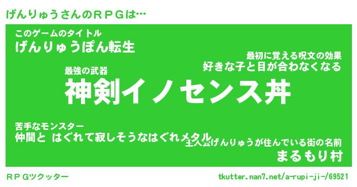 | 男性向けラノベタイトル風あだ名 | 『げんりゅうの憂鬱』 |