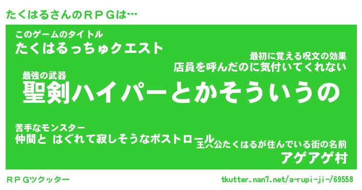 | ファンタジー風あだ名 | 『タクフェル』『エターナルタクハルー』 |