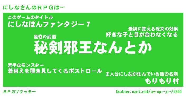 | ファンタジー風あだ名 | 『ニシフェル』『エターナルニシナー』 |