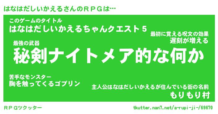 | 男性向けラノベタイトル風あだ名 | 『はなはだしいかえるの憂鬱』 |