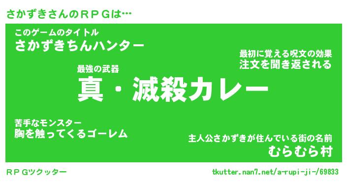 | 男性向けラノベタイトル風あだ名 | 『サカズキアートオンライン』 |