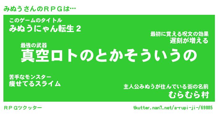 | ファンタジー風あだ名 | 『ミヌフェル』『エターナルミヌウー』 |