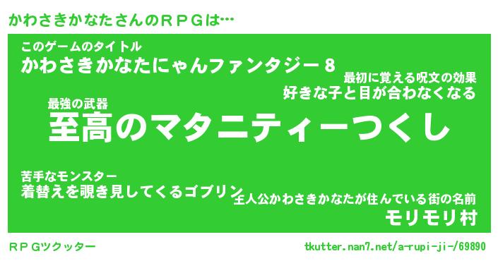 | 男性向けラノベタイトル風あだ名 | 『カワサキカナタアートオンライン』 |