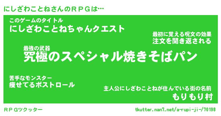| 男性向けラノベタイトル風あだ名 | 『ニシザワコトネアートオンライン』 |