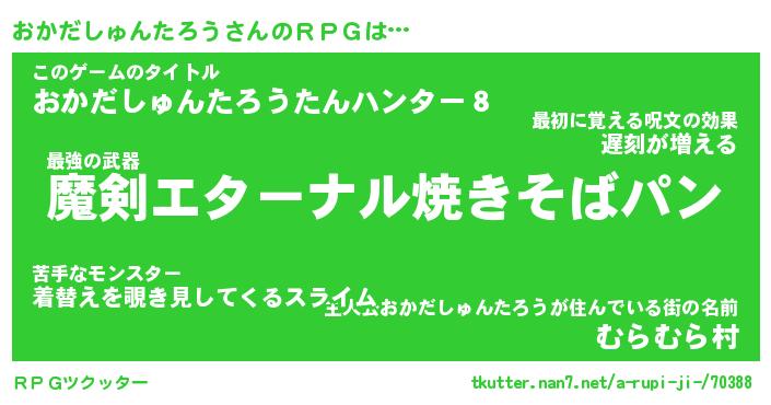 | 男性向けラノベタイトル風あだ名 | 『おかだしゅんたろうの憂鬱』 |