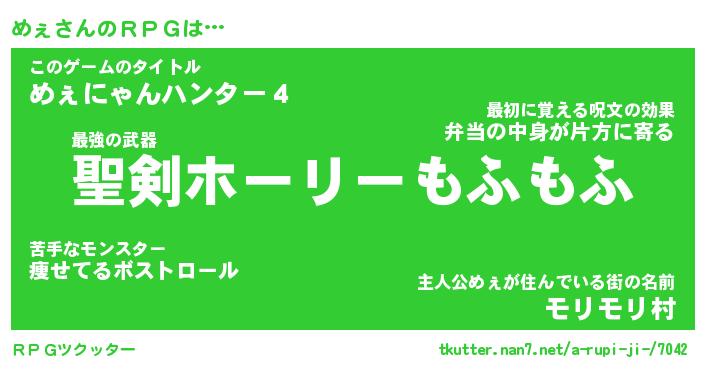 | ファンタジー風あだ名 | 『メェフェル』『エターナルメェー』 |