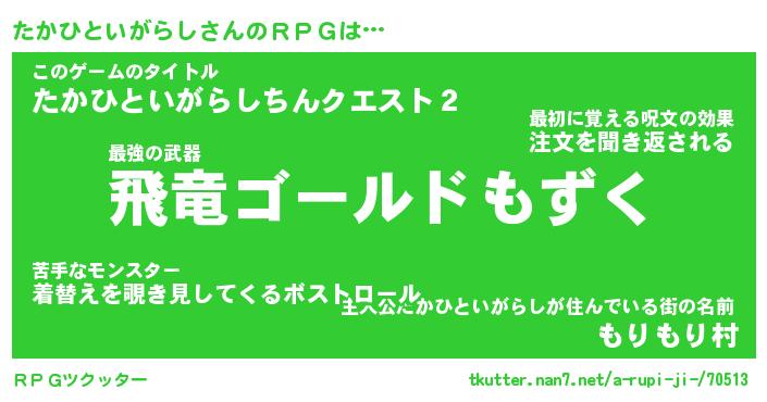 | 胡散臭い通販商品みたいなあだ名 | 『億万長者になれる霊験あらたかなお札…その名も「たかひといがらし」』 |