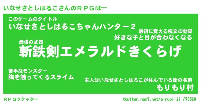 | 伝説のあだ名 | 『伝説のスナイパーいなせさとしはるこ』 |