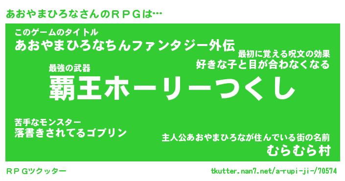 | 伝説のあだ名 | 『封印されし傭兵あおやまひろな』 |