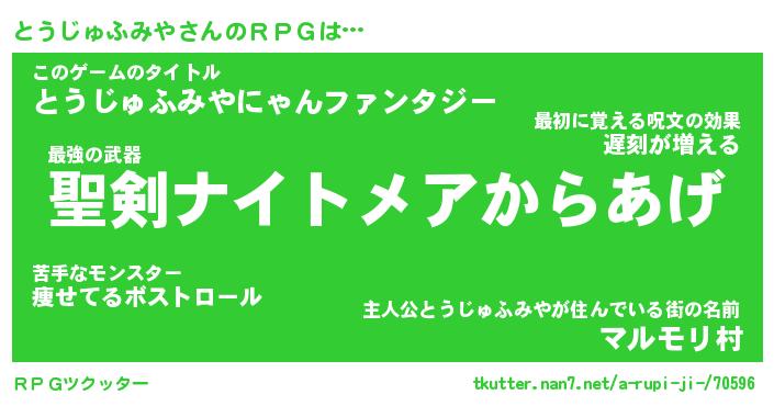 | 男性向けラノベタイトル風あだ名 | 『とうじゅふみやの憂鬱』 |