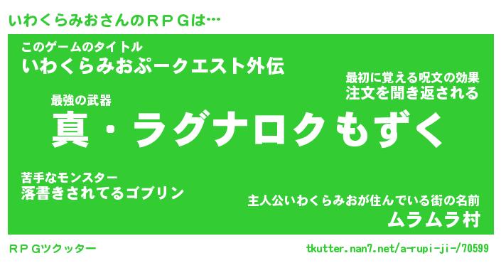| 男性向けラノベタイトル風あだ名 | 『イワクラミオアートオンライン』 |