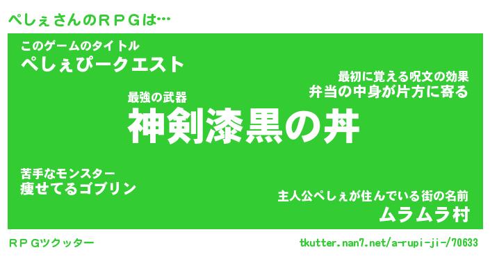 | 料理風あだ名 | 『節約★ぺしぇと油揚げの玉子丼』 |