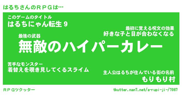 | ファンタジー風あだ名 | 『ハルフェル』『エターナルハルチー』 |