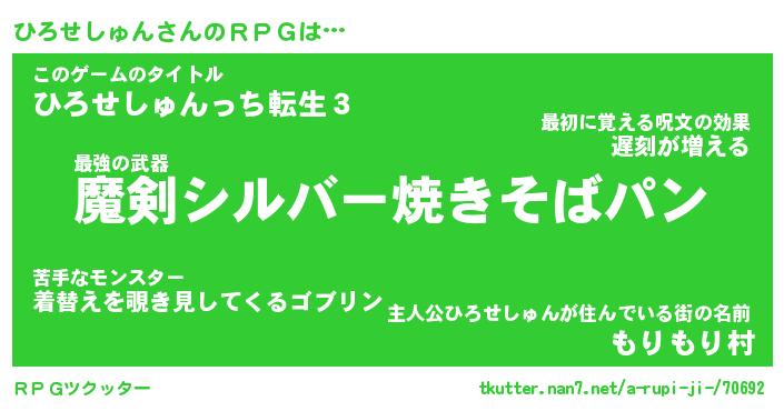 | 伝説のあだ名 | 『伝説の傭兵ひろせしゅん』 |