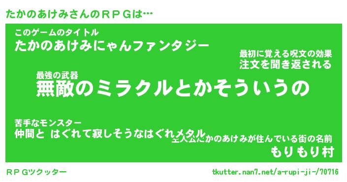 | 男性向けラノベタイトル風あだ名 | 『タカノアケミアートオンライン』 |