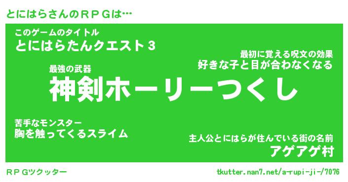 | 胡散臭い通販商品みたいなあだ名 | 『モテモテ間違いなし水晶球…その名も「とにはら」』 |