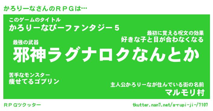 | 伝説のあだ名 | 『封印されし竜騎士かろりーな』 |