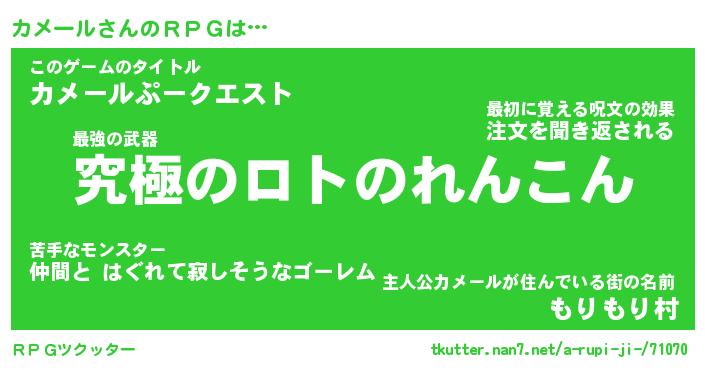 | 意味不明あだ名 | 『ペロリンカメール』『永久保存カメール』 |