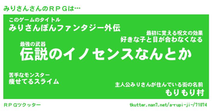 | 胡散臭い通販商品みたいなあだ名 | 『モテモテ間違いなし霊験あらたかなお札…その名も「みりさん」』 |