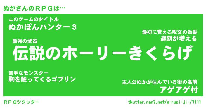 | 伝説のあだ名 | 『不死鳥の傭兵ぬか』『最古の忍者ぬか』 |