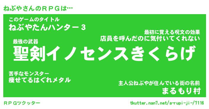 | 男性向けラノベタイトル風あだ名 | 『ねぶやの憂鬱』 |