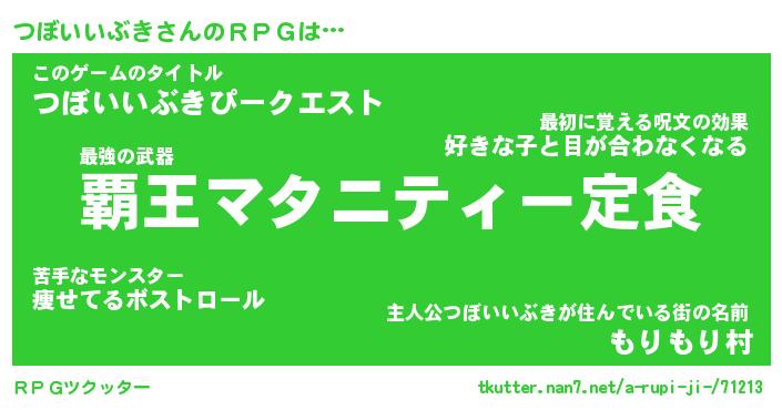 | 男性向けラノベタイトル風あだ名 | 『ツボイイブキアートオンライン』 |