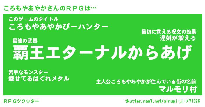 | 胡散臭い通販商品みたいなあだ名 | 『億万長者になれる水晶球…その名も「ころもやあやか」』 |