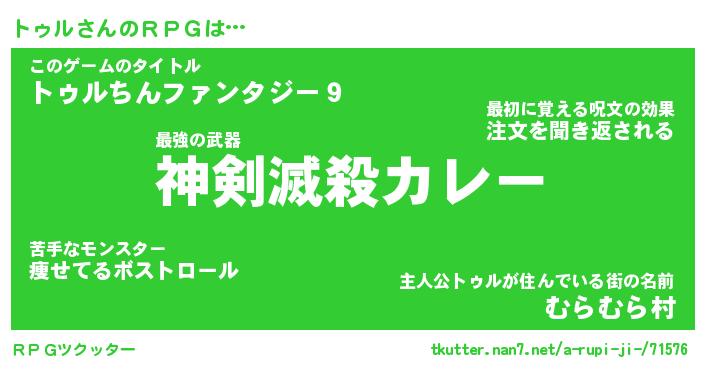 | 男性向けラノベタイトル風あだ名 | 『トゥルの憂鬱』 |