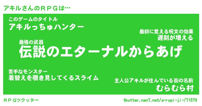 | ファンタジー風あだ名 | 『アキフェル』『エターナルアキルー』 |
