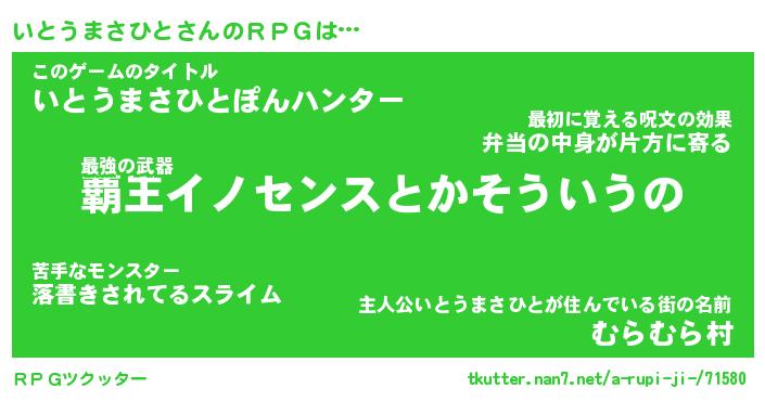 | 伝説のあだ名 | 『封印されしスナイパーいとうまさひと』 |