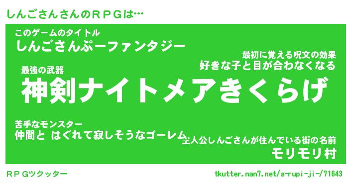 | ファンタジー風あだ名 | 『シンフェル』『エターナルシンゴサンー』 |