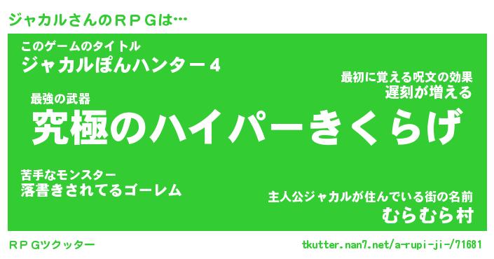 | 男性向けラノベタイトル風あだ名 | 『ジャカルの憂鬱』 |