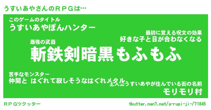 | ファンタジー風あだ名 | 『ウスフェル』『エターナルウスイアヤー』 |