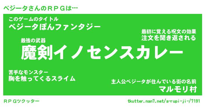 | 胡散臭い通販商品みたいなあだ名 | 『必ず成功する霊験あらたかなお札…その名も「べジータ」』 |