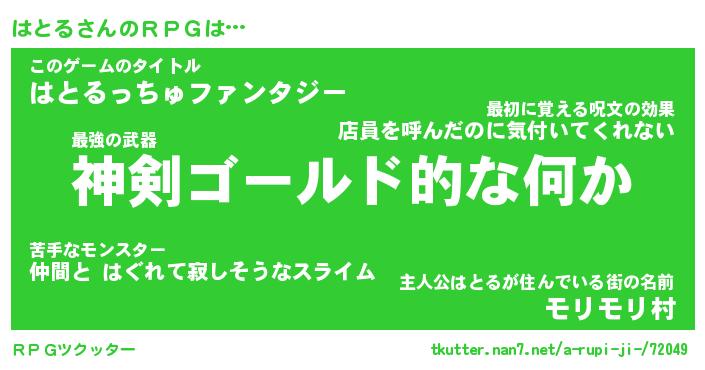 | 男性向けラノベタイトル風あだ名 | 『はとるの憂鬱』 |