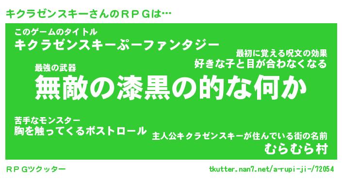 | 男性向けラノベタイトル風あだ名 | 『キクラゼンスキーアートオンライン』 |