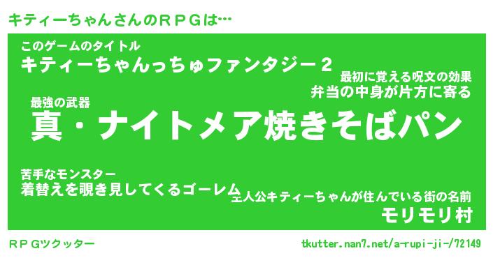 | 男性向けラノベタイトル風あだ名 | 『キティーチャンアートオンライン』 |
