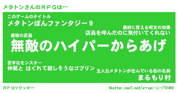 | 男性向けラノベタイトル風あだ名 | 『メタトンアートオンライン』 |