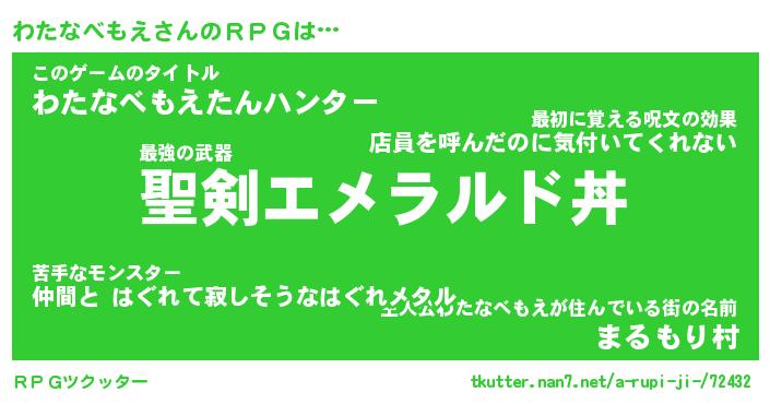 | 胡散臭い通販商品みたいなあだ名 | 『必ず成功する霊験あらたかなお札…その名も「わたなべもえ」』 |