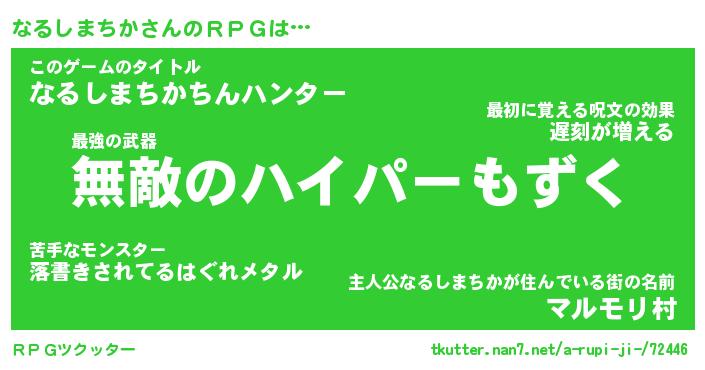 | 男性向けラノベタイトル風あだ名 | 『ナルシマチカアートオンライン』 |