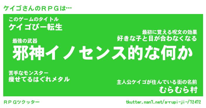 | ファンタジー風あだ名 | 『ケイフェル』『エターナルケイゴー』 |