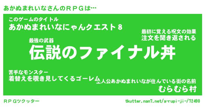 | 料理風あだ名 | 『節約★あかぬまれいなと油揚げの玉子丼』 |