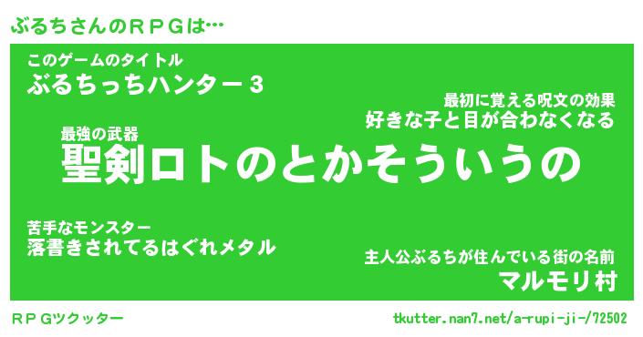 | 男性向けラノベタイトル風あだ名 | 『ぶるちの憂鬱』 |