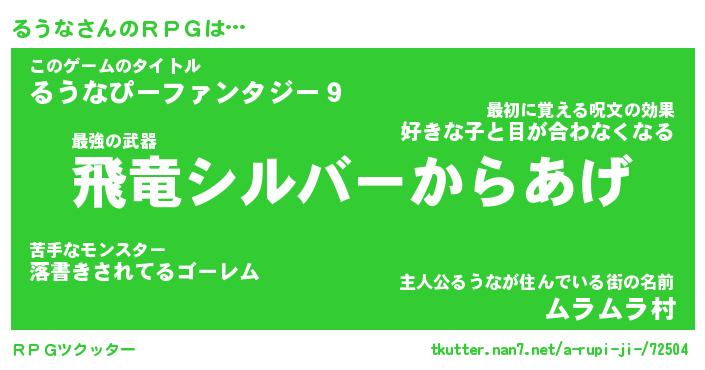 | ファンタジー風あだ名 | 『ルウフェル』『エターナルルウナー』 |