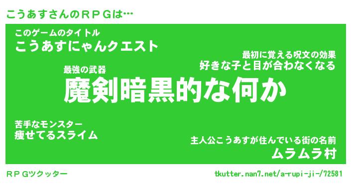 | ファンタジー風あだ名 | 『コウフェル』『エターナルコウアスー』 |