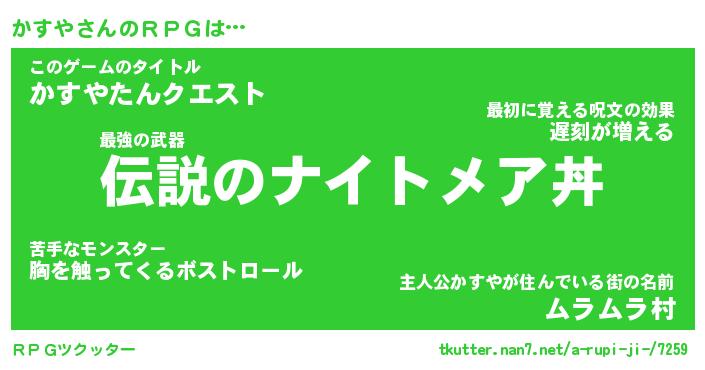 | 男性向けラノベタイトル風あだ名 | 『かすやの憂鬱』 |