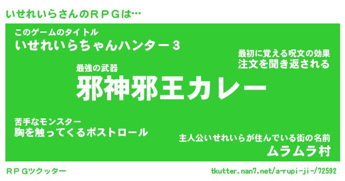 | 伝説のあだ名 | 『封印されし傭兵いせれいら』 |