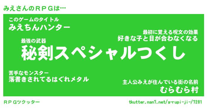 | ファンタジー風あだ名 | 『ミエフェル』『エターナルミエー』 |