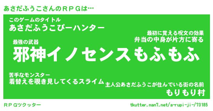 | 男性向けラノベタイトル風あだ名 | 『アサダフウコアートオンライン』 |