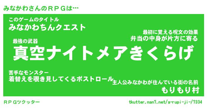 | 意味不明あだ名 | 『ペロリンみなかわ』『永久保存みなかわ』 |